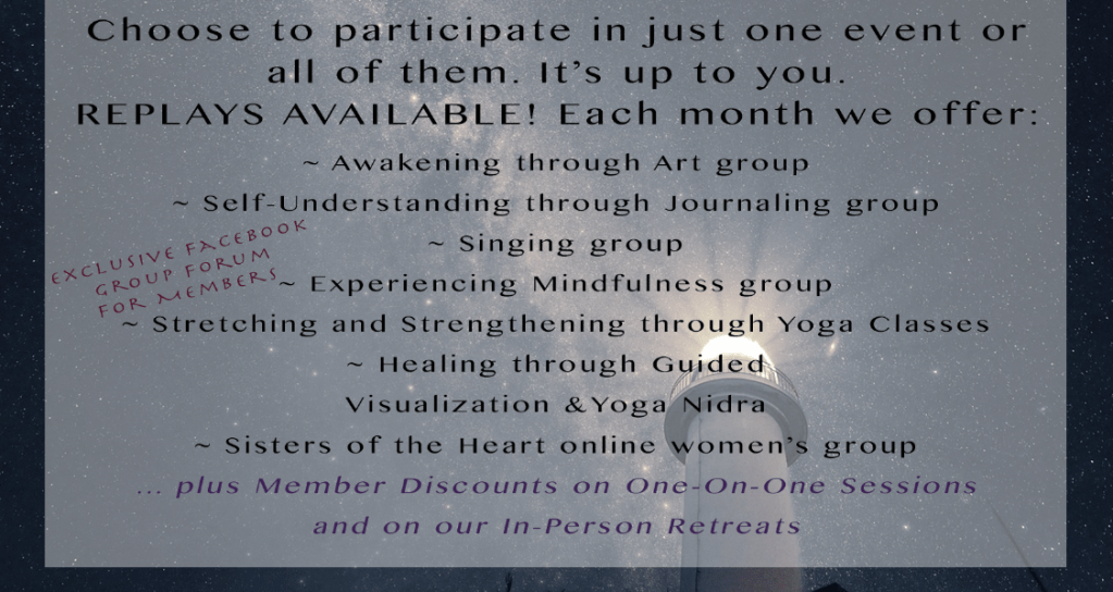 The way it shall work is that I will upload classes/events each month on a variety of topics, and you can enjoy them in your own time when suits you best for your schedule. Some are videos and others are audio. I also hope to do live gatherings as well on Zoom. I cannot wait to see where this goes, all the beauty we will create together. Wow!