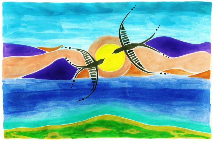 Watercolor made with the sacred waters gathered from the Great Lake