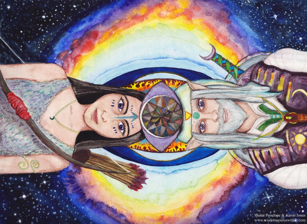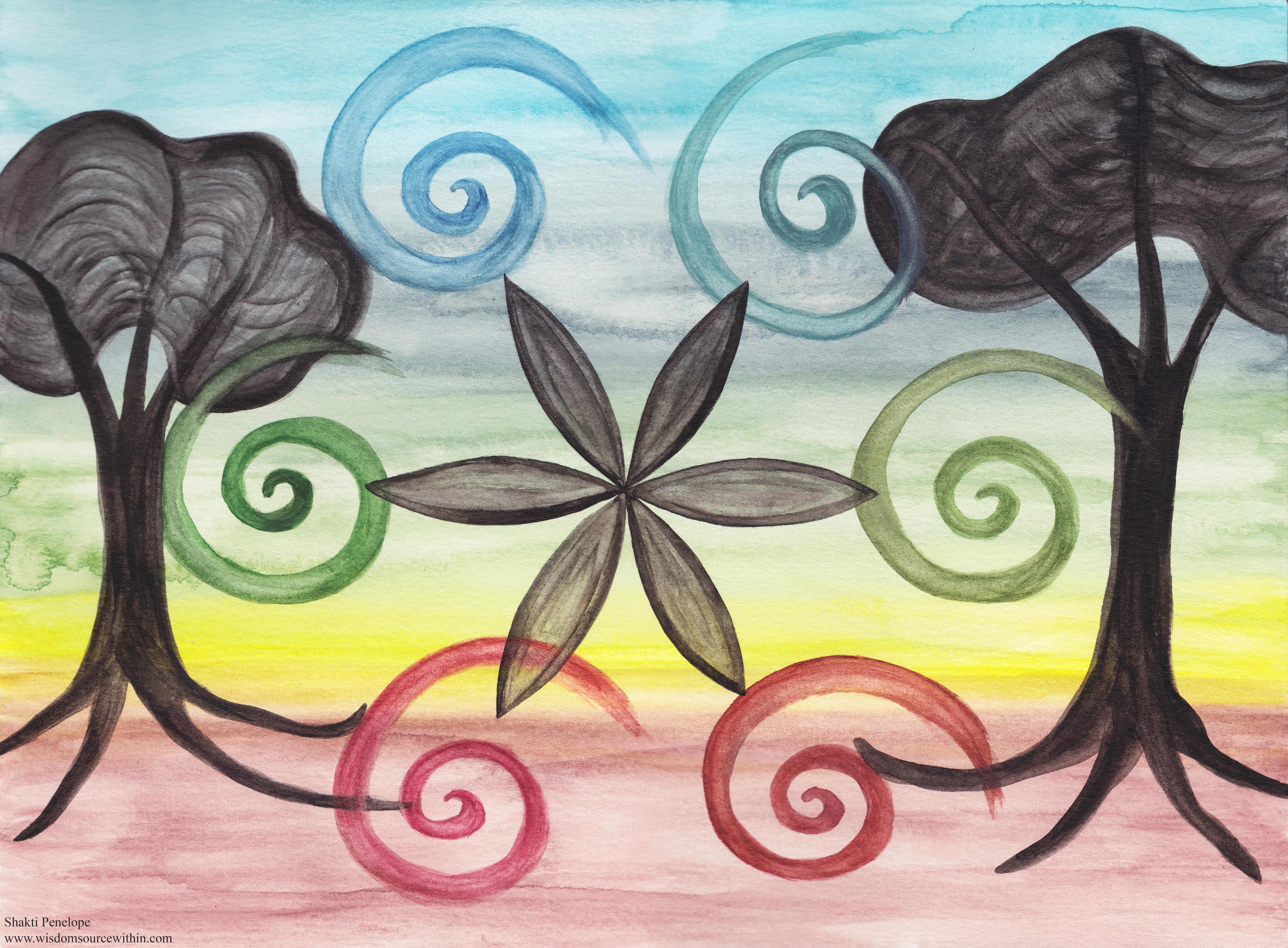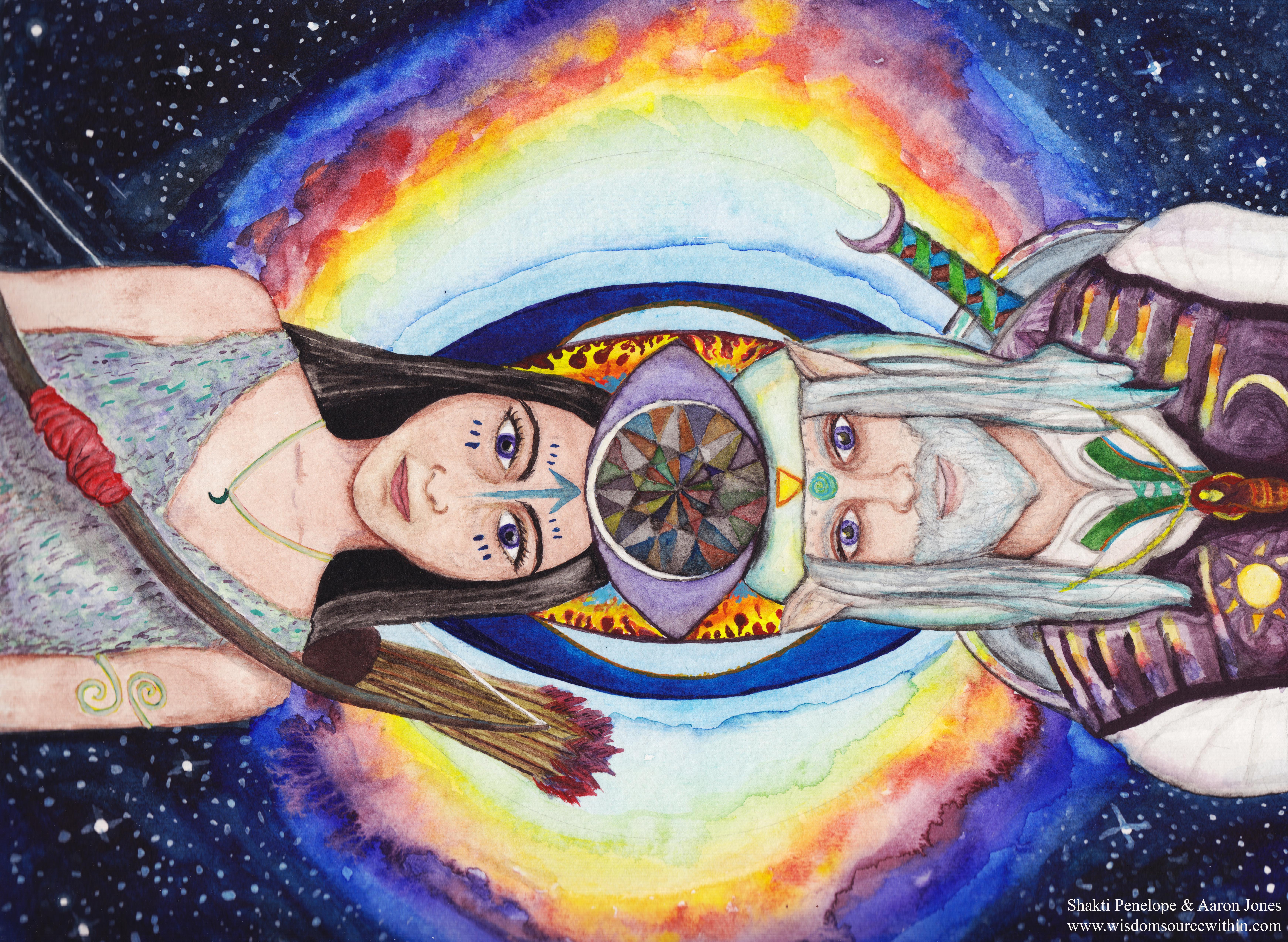 This watercolor and digital media is a co-creation by Aaron Jones and Shakti Penelope.
