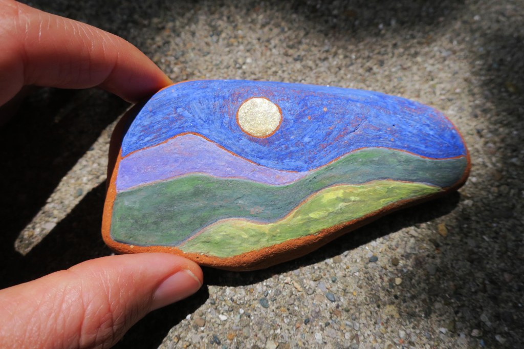 Watercolor on beach stone from Lagonisi, Greece
